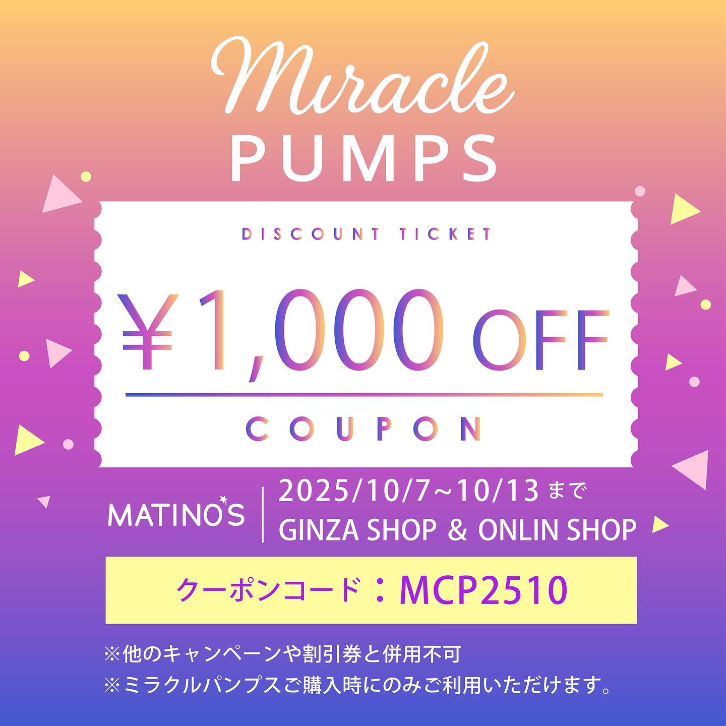 ※本クーポン券はミラクルパンプスIと IIにのみご利用頂けます。