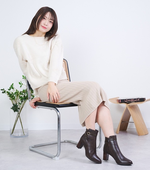 安定感抜群の6.5cmチャンキーヒール。スタイリッシュな立ち姿で履き心地は楽ちん!理想的なブーツ。シンプルなバックルデザインでコーデしやすい!通勤&お出かけに大活躍!冬のお出かけに可愛くきまるオススメブーツ!