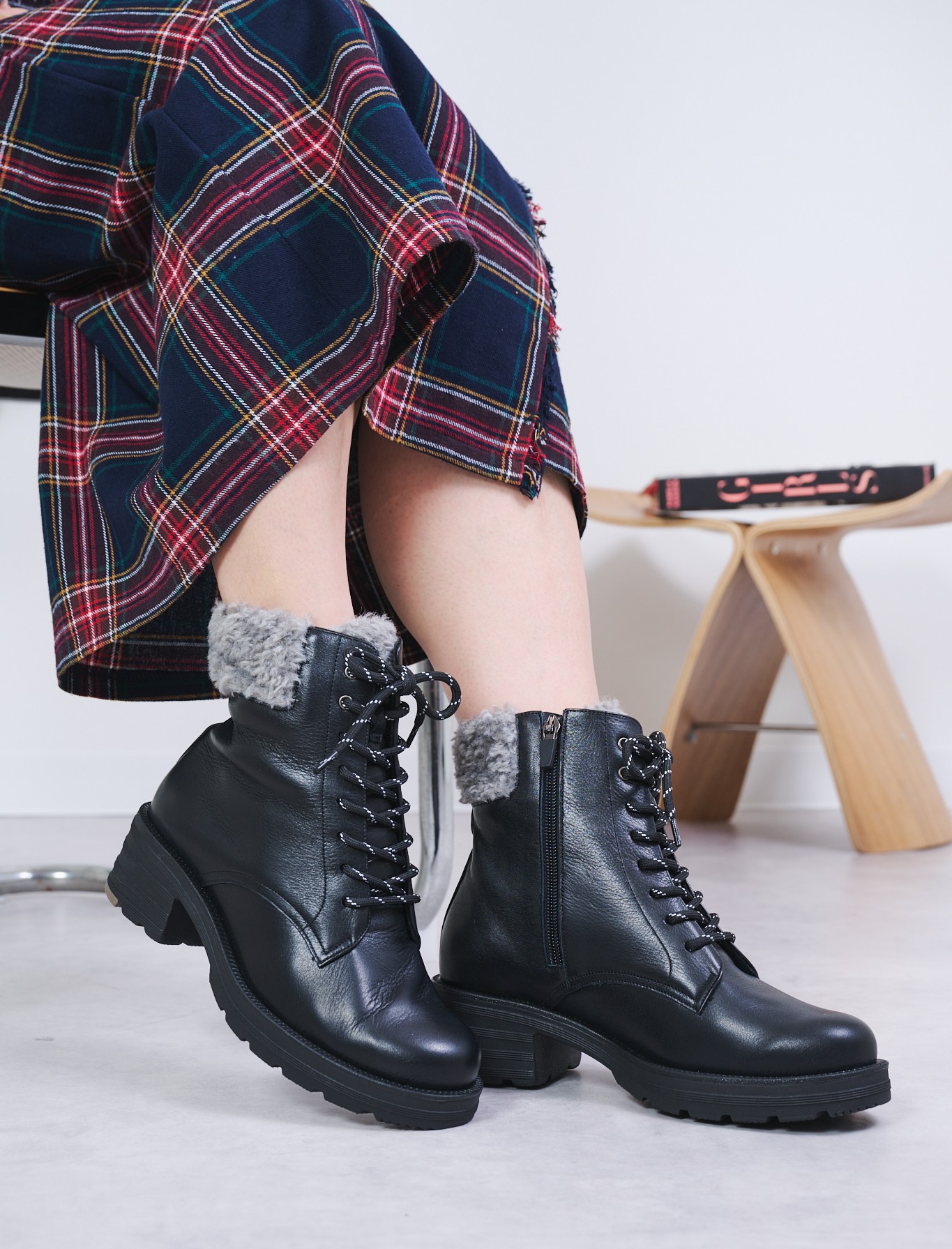 ふわッもこ!あったか軽量トラックソールブーツ。シンプルかつ可愛いデザイン、撥水加工された柔らか本革で、冬のお出かけも快適!ブラックとアイボリーの2色展開。