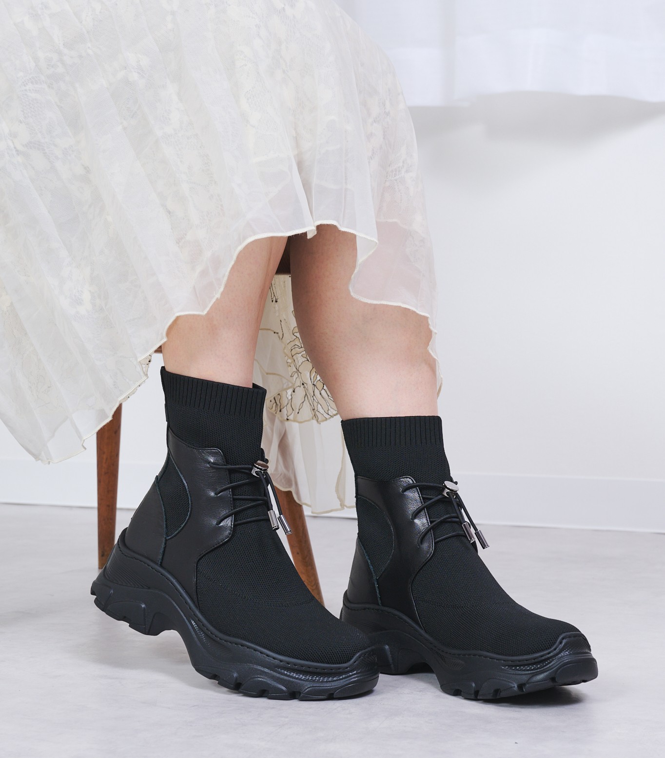 ニット&レザーのラグジュアリーなLOOKS!ボリュームのあるトラックソールでも軽量設計!日本製ならではの履き心地♥カジュアルスタイルでいっぱい歩いても疲れない大人気優秀ブーツ!
